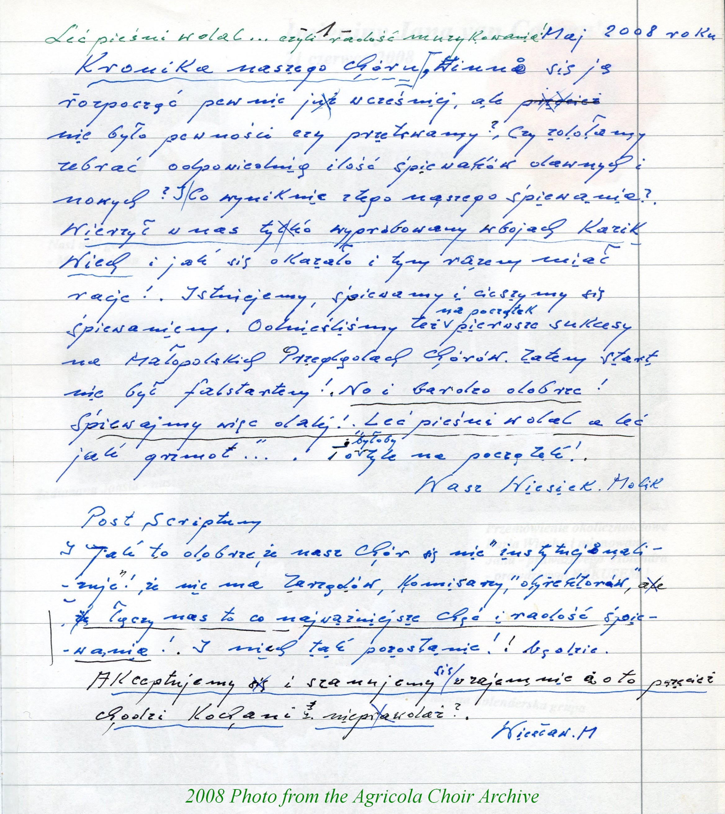 Winno się kronikę rozpocząć pewnie wcześniej, ale nie było pewności czy przetrwamy. Czy zdołamy zebrać odpowiednią liczbę śpiewaków dawnych i nowych? Co wyniknie z tego naszego śpiewania?